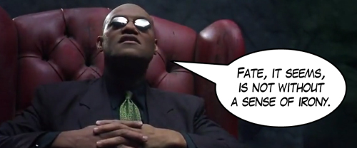 As Morpheus said in The Matrix, "Fate, it seems, is not without a sense of irony."